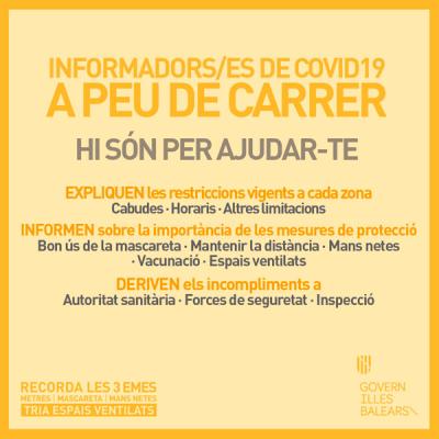 - Informen sobre la importància de las mesures de protecció (bon ús de la masceta, mantenir la distància, mans netes, vacunació, espacis ventilats).