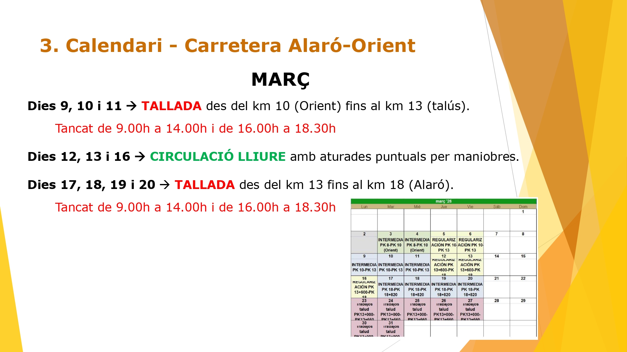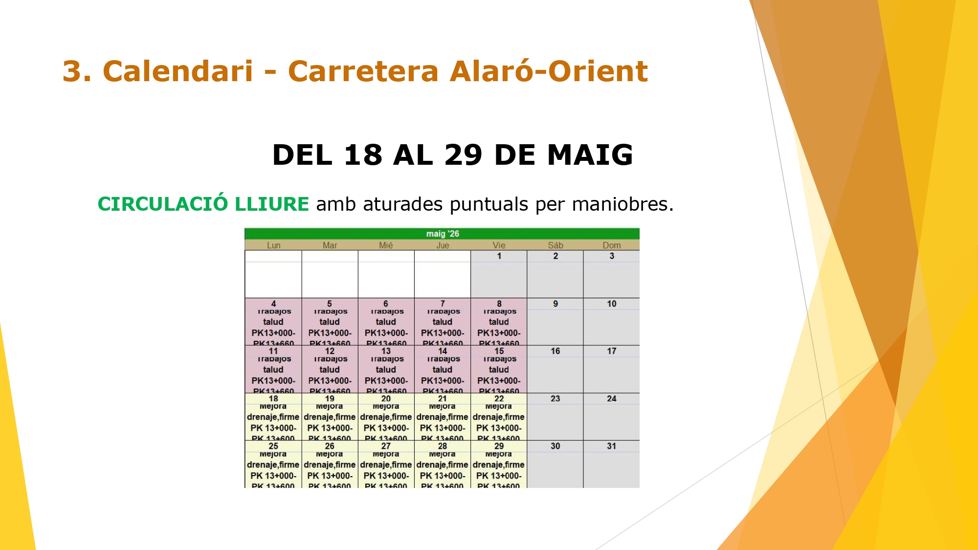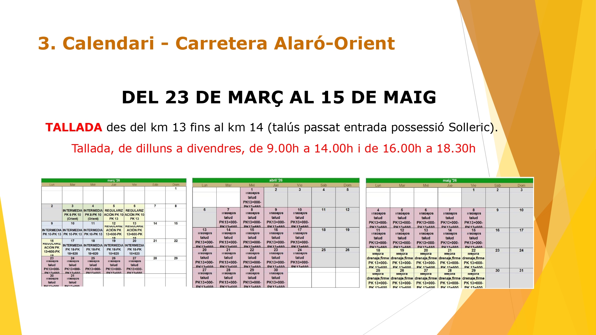 Previsió obres carretera Alaró-Bunyola
