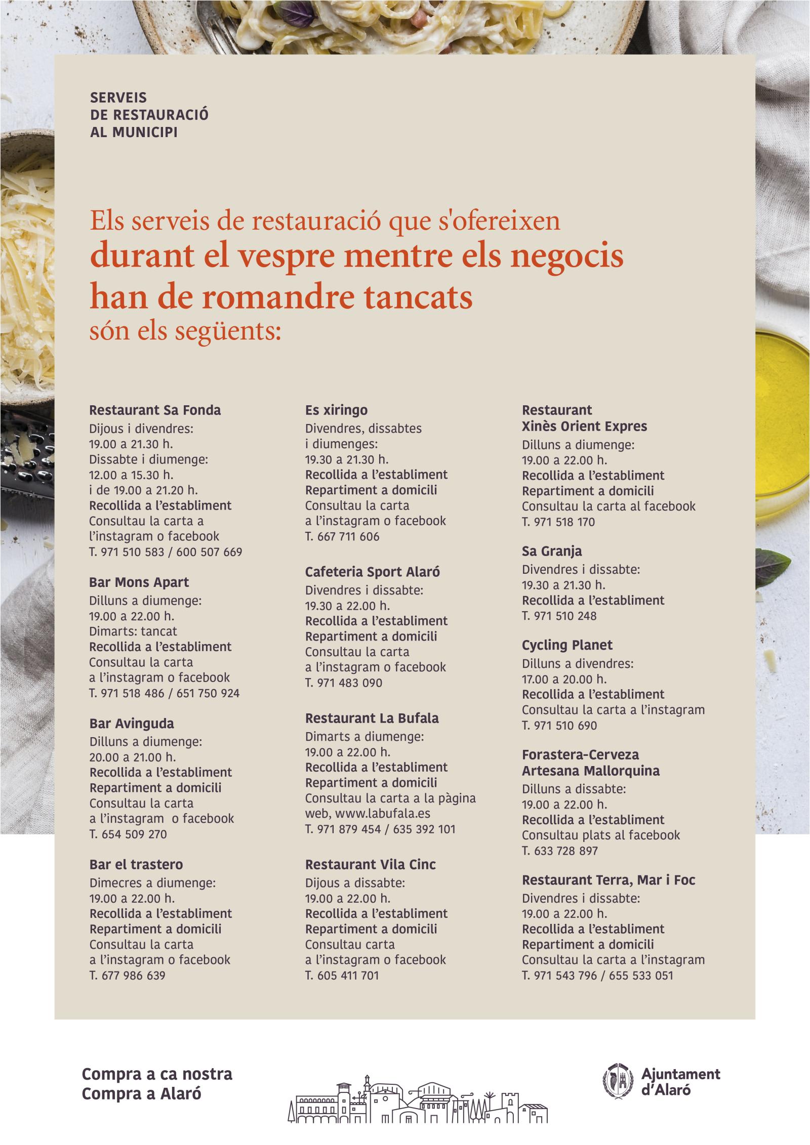 Serveis de restauració a Alaró quan els negocis han de romandre tancats